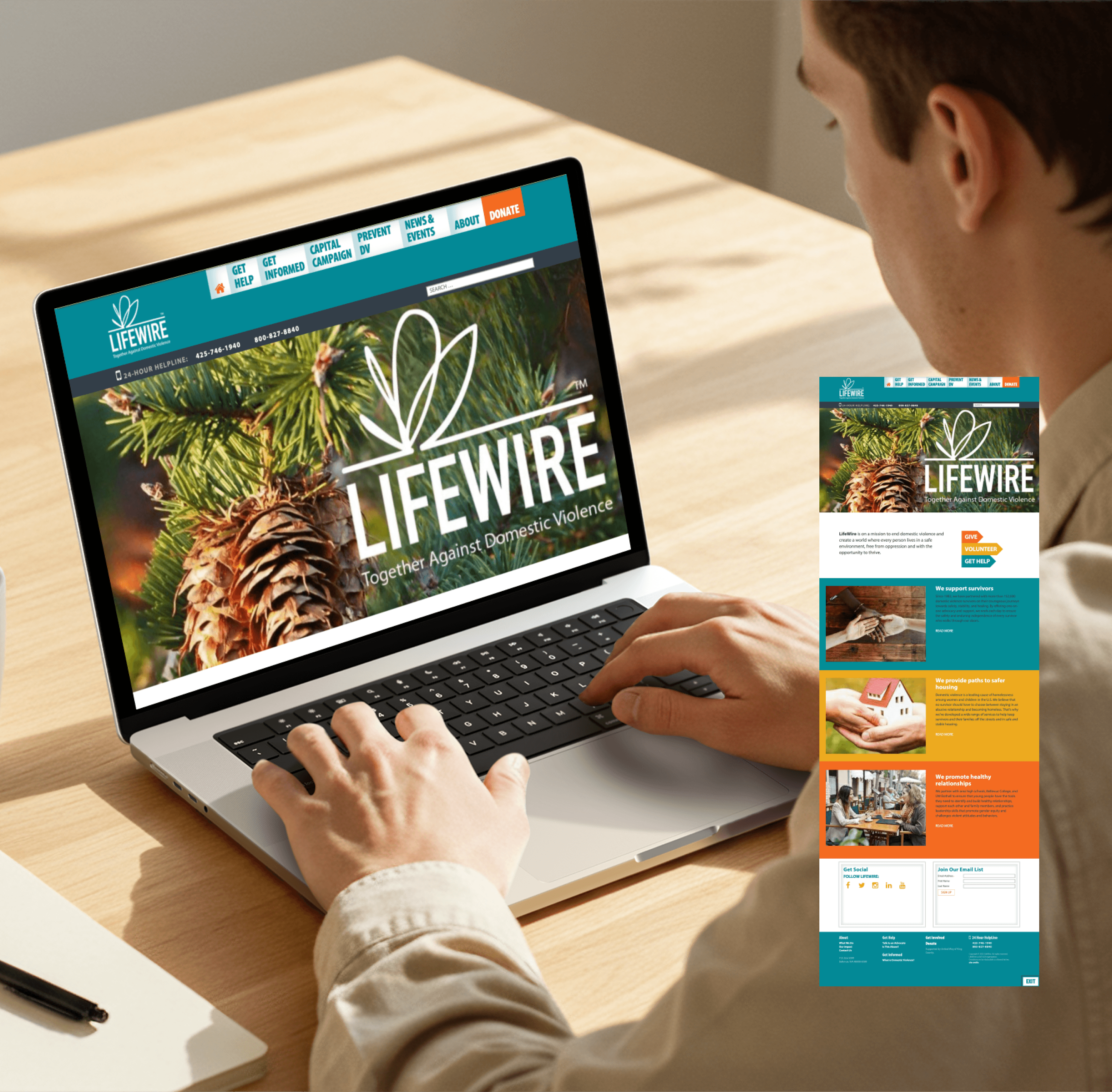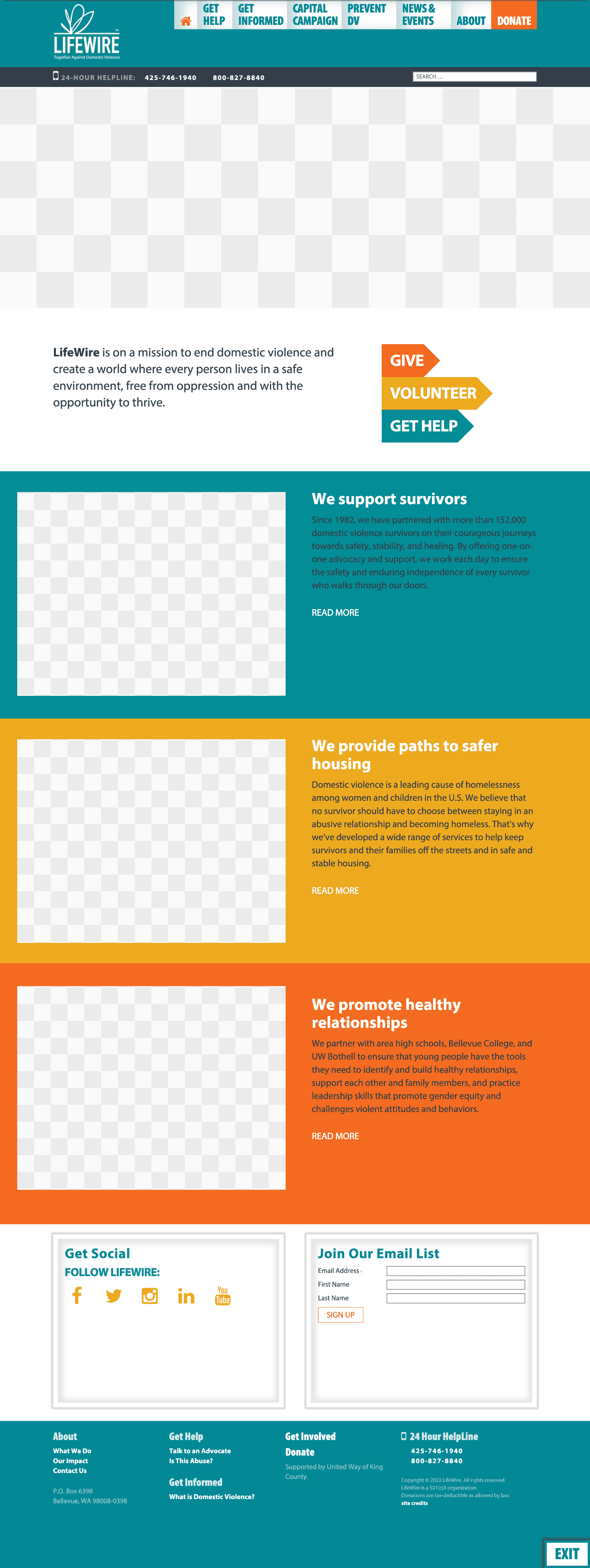 LifeWire's website currently creates barriers for both survivors seeking help and supporters looking to contribute. The site lacks clear user pathways, suffers from poor mobile experience, and fails to guide users toward meaningful action. These issues prevent the organization from effectively serving those in crisis and engaging potential donors and volunteers.