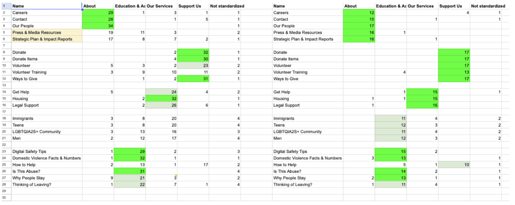Based on best practices, multiple content audits, and reviews of comparable organizations. Then, we brainstormed and tested new arrangements.