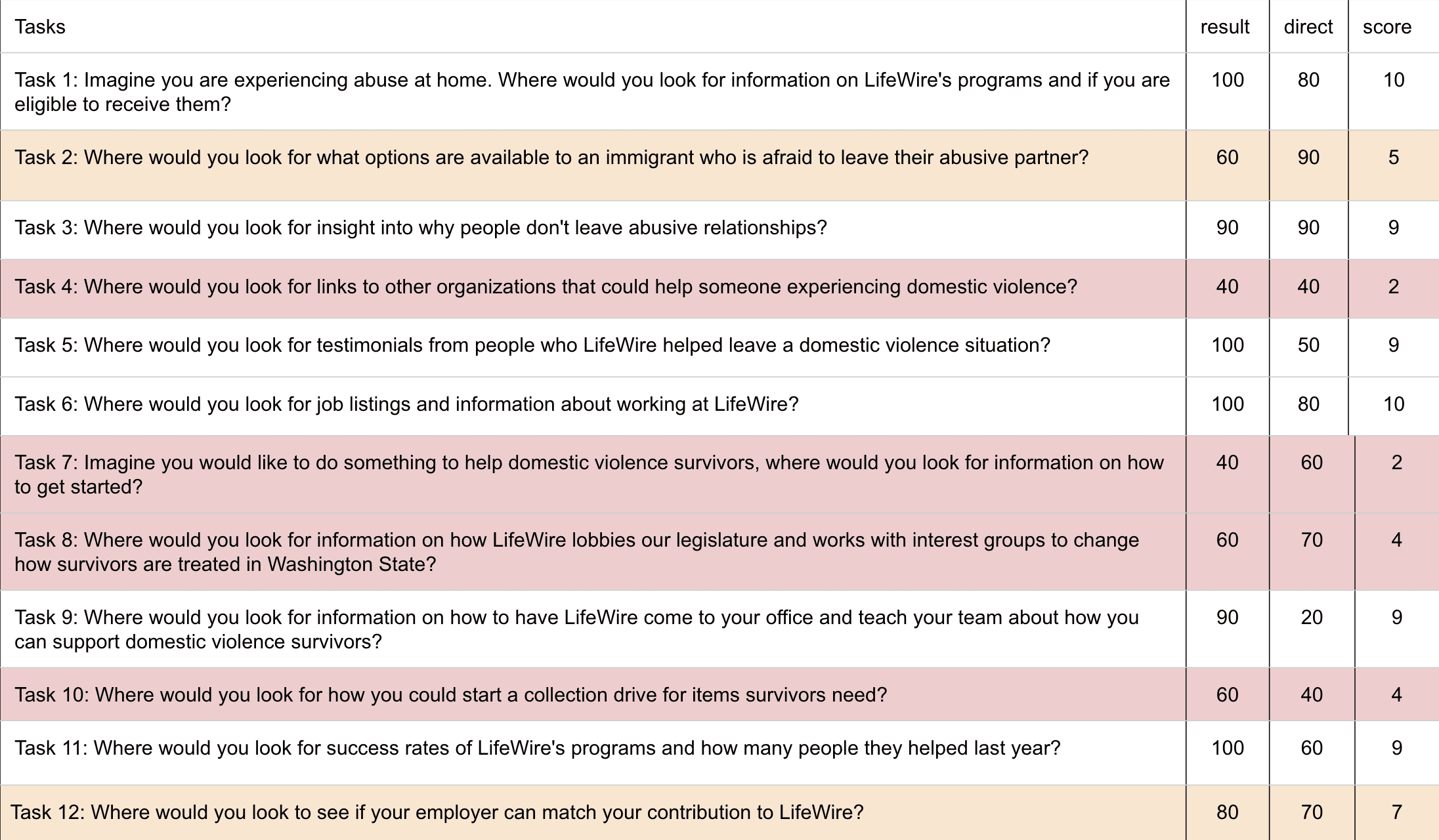 External Group — Thurston County survivors who had been community activists and donors; real users with no prior knowledge of the site's structure.