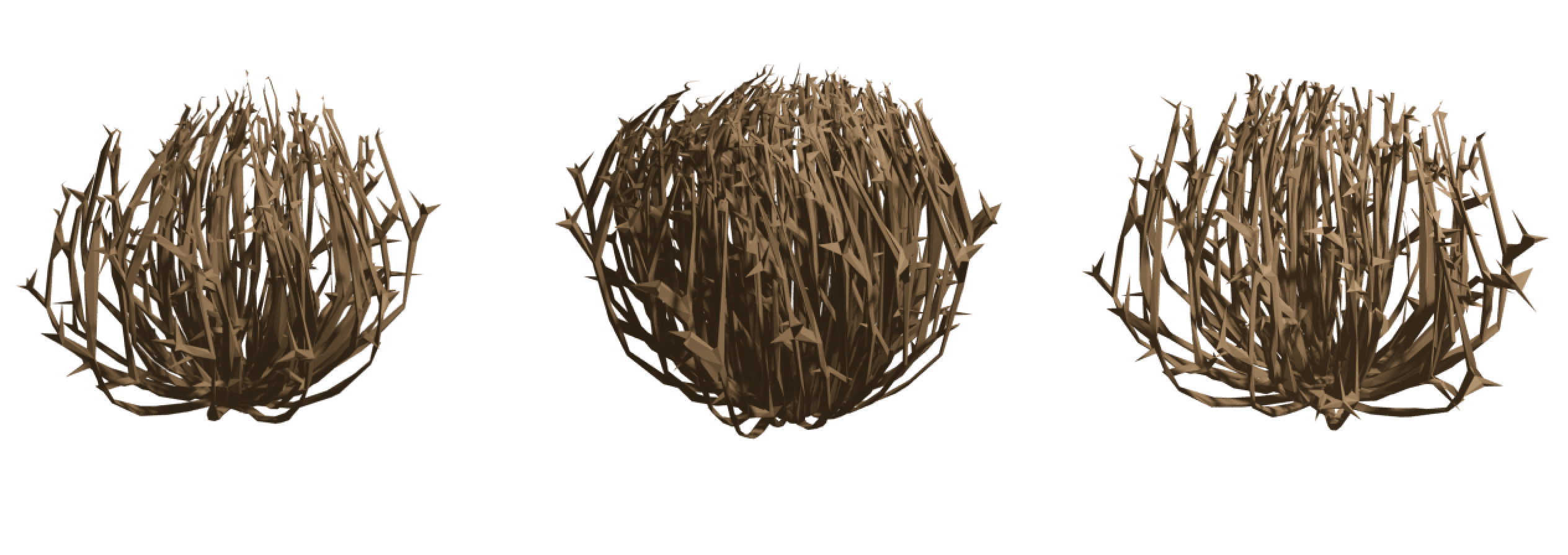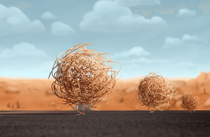 We referenced the short animation Tumbleweed, and we used low poly style branches to simulate the natural tumbleweed.Due to the varied and complex morphology of the tumbleweed. In order to differentiate the shapes of the different tumbleweeds, Blender's node modeling was used here to make a suitable model.